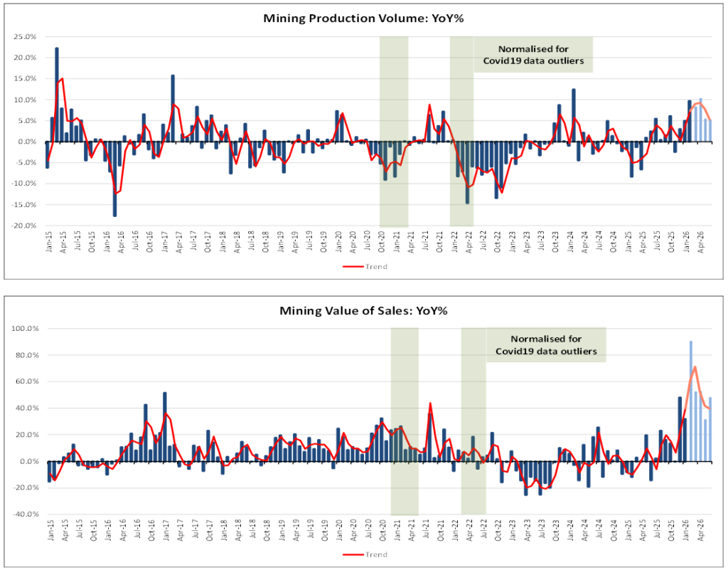 - A 12.8% increase in Gold production, which added an additional 1.3 percentage points to total mining output growth for the month.