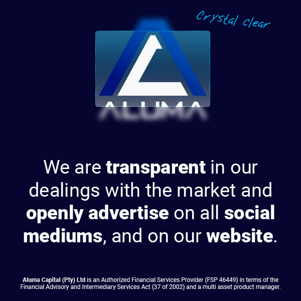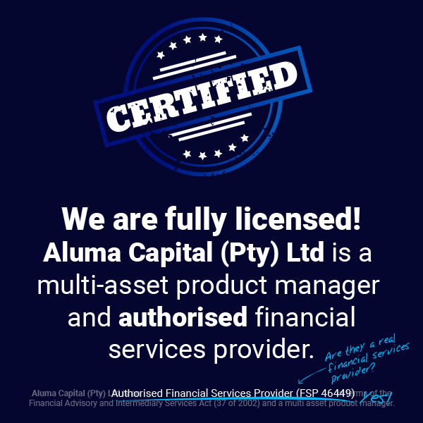 I commend Aluma Capital, specifically Leonie Nortje, for outstanding and sustainable service delivery. The fluctuating financial climate demands experts to be constantly aware and ahead of financial planning.